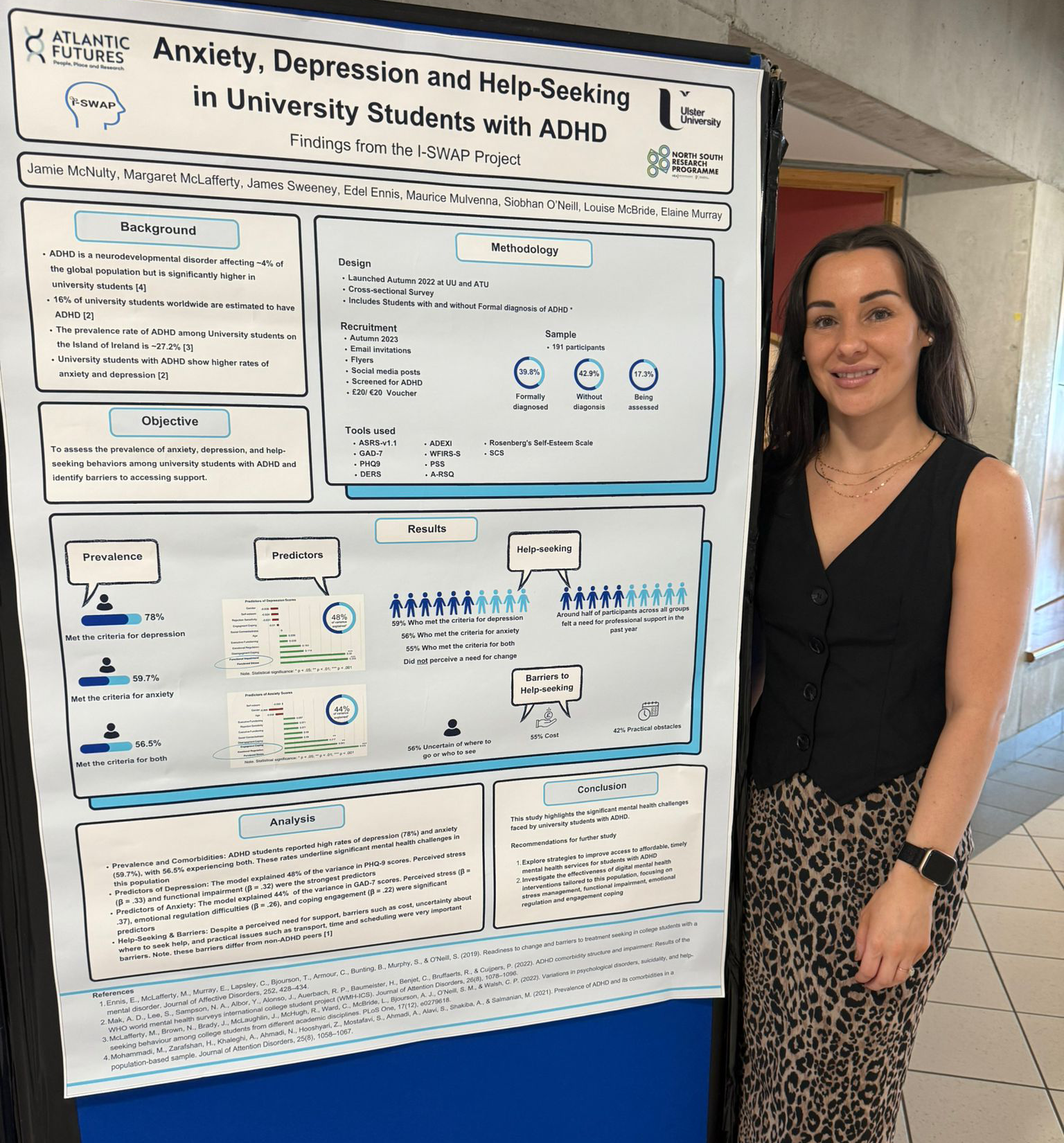 A key highlight of the symposium for me was the discussion led by the I-SWAP team, Dr Elaine Murray, Dr Louise McBride, Dr Margaret McLafferty, James Sweeney and Sophy Farland which I have been collaborating with since lasr year. The presentation focused on findings from the I-SWAP project. Their work has been instrumental in shedding light on the unique challenges faced by students with ADHD, reinforcing the importance of tailored interventions.